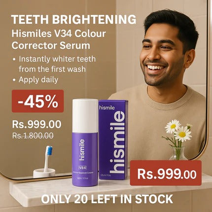Meet the HiSmile V34 Colour Corrector Serum – your secret weapon for a photo-ready smile every day. This innovative purple-based formula works by neutralizing yellow undertones in your teeth, instantly revealing a brighter, whiter-looking smile without harsh bleaching or sensitivity.